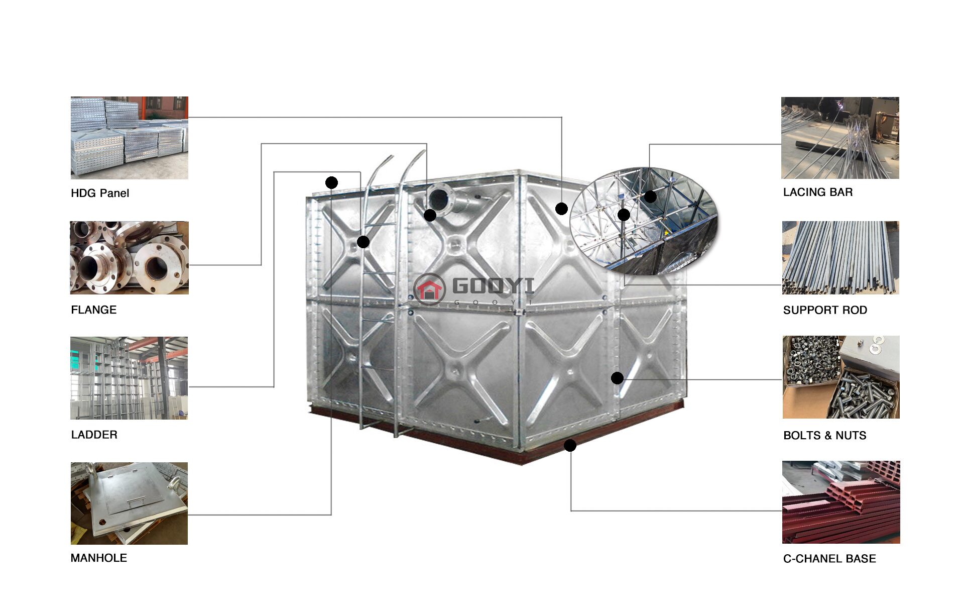 Galvanised Steel Water Tank structure mainly incude 5 party ,